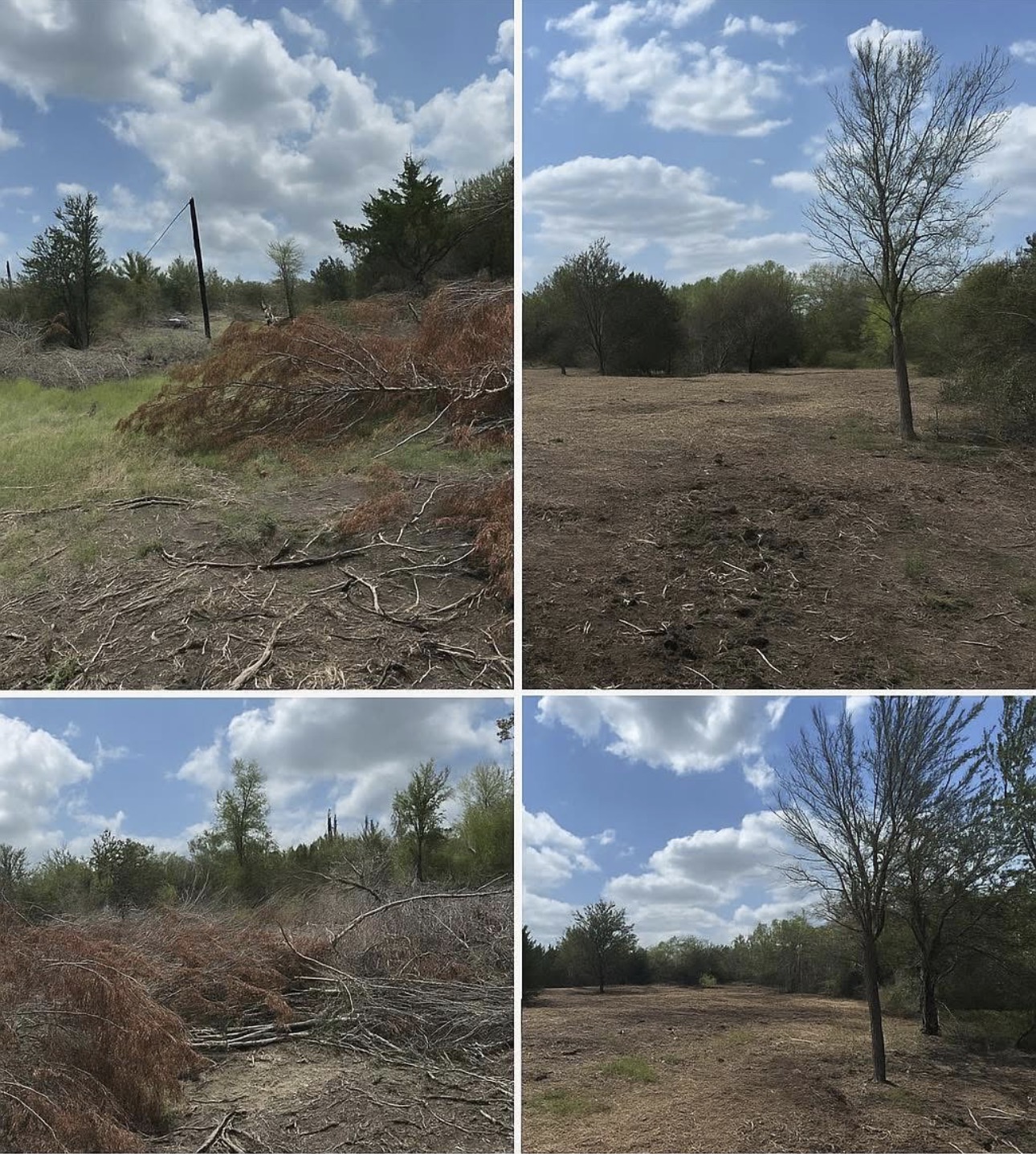 Take a look at the real results CenTex Woodland Co. delivers for residential landowners throughout Central Texas. Our gallery showcases ongoing and completed forestry mulching projects, residential demolition work, traditional land clearing jobs, and right-of-way maintenance services across a variety of rural properties.